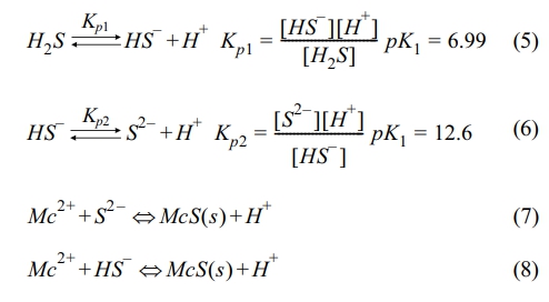 Me2+: represents the heavy metal cations, MeS: represents the precipitated metal sulfides