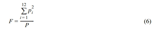 이후 Arnoldus(1977)는 Morocco 지역에서 Fournier’s index를 적용한 R factor 예측 모형이 낮은 결정계수(R2 = 0.55)를 갖는 것을 관찰하였다. 이와 같은 한계를 보완하기 위해 수정된 Fournier’s index를 식 (6)과 같이 제안하였다.