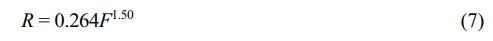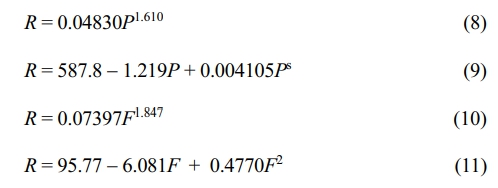 Renard and Freimund(1994)는 미국의 132개 기상 관측소의 강우 자료를 이용하여 연 강우량(P, mm) 또는 수정된 Fournier’s index (F, mm)를 변수로 하는 멱함수(power function)와 이차함수(quadratic function) 형태의 R factor 추정 모형을 식 (8) - 식 (11)과 같이 제안하였다.
