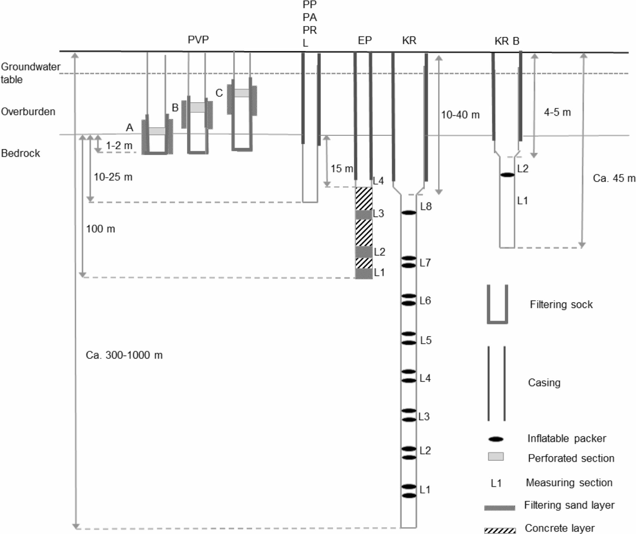 Table 1 Various types of observation boreholes installed at the Olkiluoto site in Finland (Vaittinen et al., 2020) |