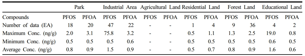 Table 6 Land use–specific PFAS concentrations in South Korea soil (Korea Environment Corporation, 2014~2023) |