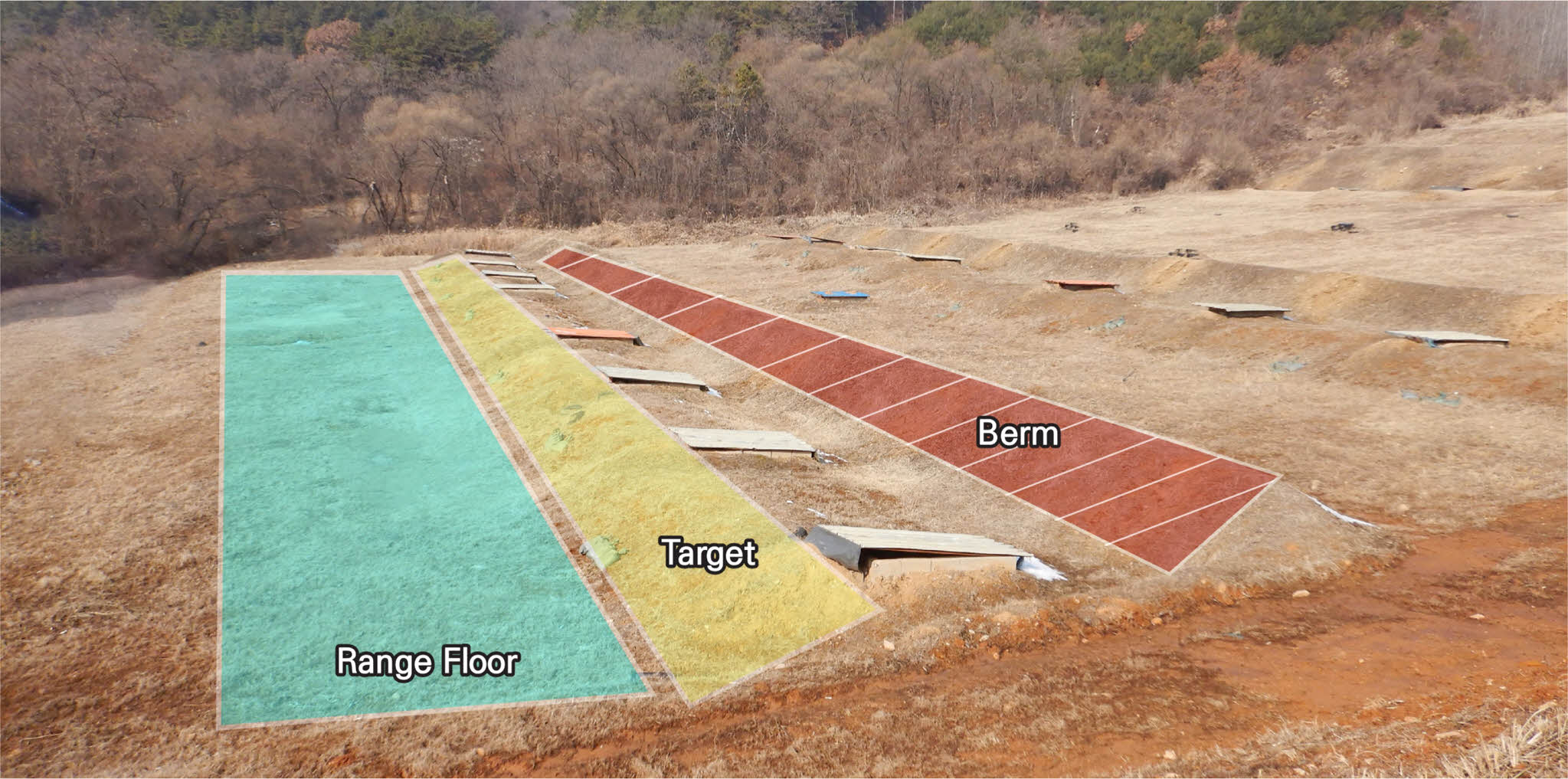 Keywords: military shooting range, lead, berm, target area, range floor