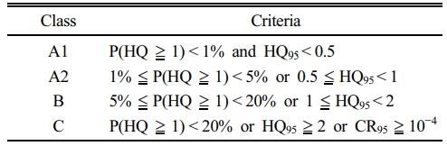 Table 5 Classification Criteria Based on Hazard Quotient (HQ) and Cancer Risk (CR) |