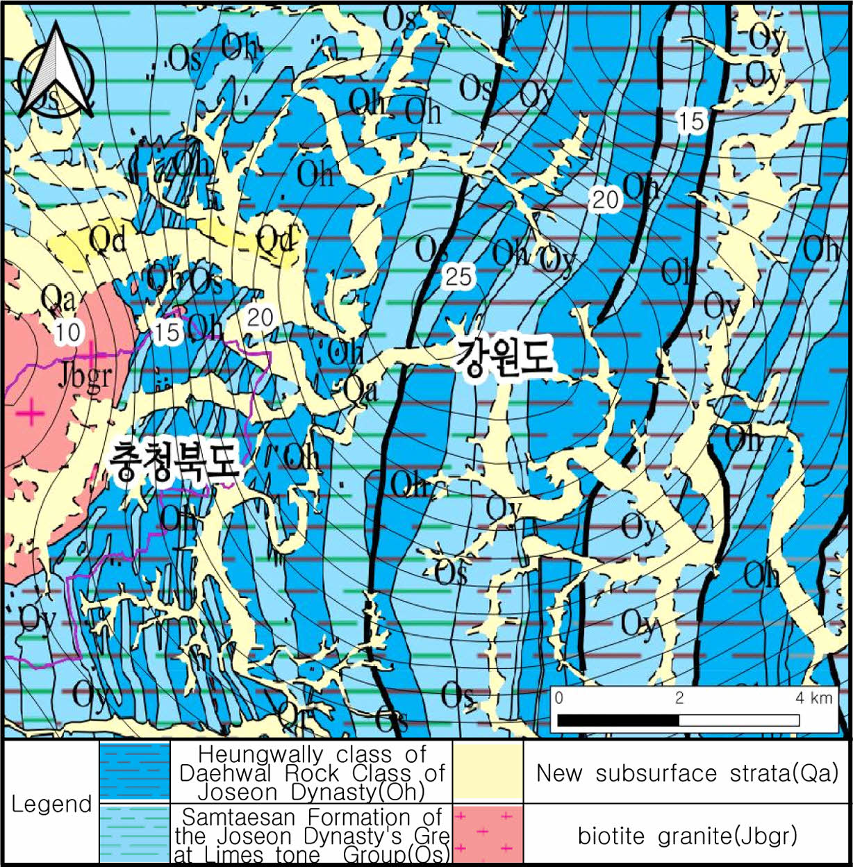 이와 같이 비소농도가 높은 지역의 지층을 분석해 보면 대부분 화강암층과 석회암층이 주를 이루고 있음을 알 수 있었으며, 대표 암질도 화강암, 석회암임을 알 수 있다.