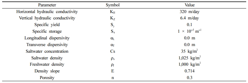 Table 1 Model parameters used for the SEAWAT simulation (modified from Chang et al., 2020) |