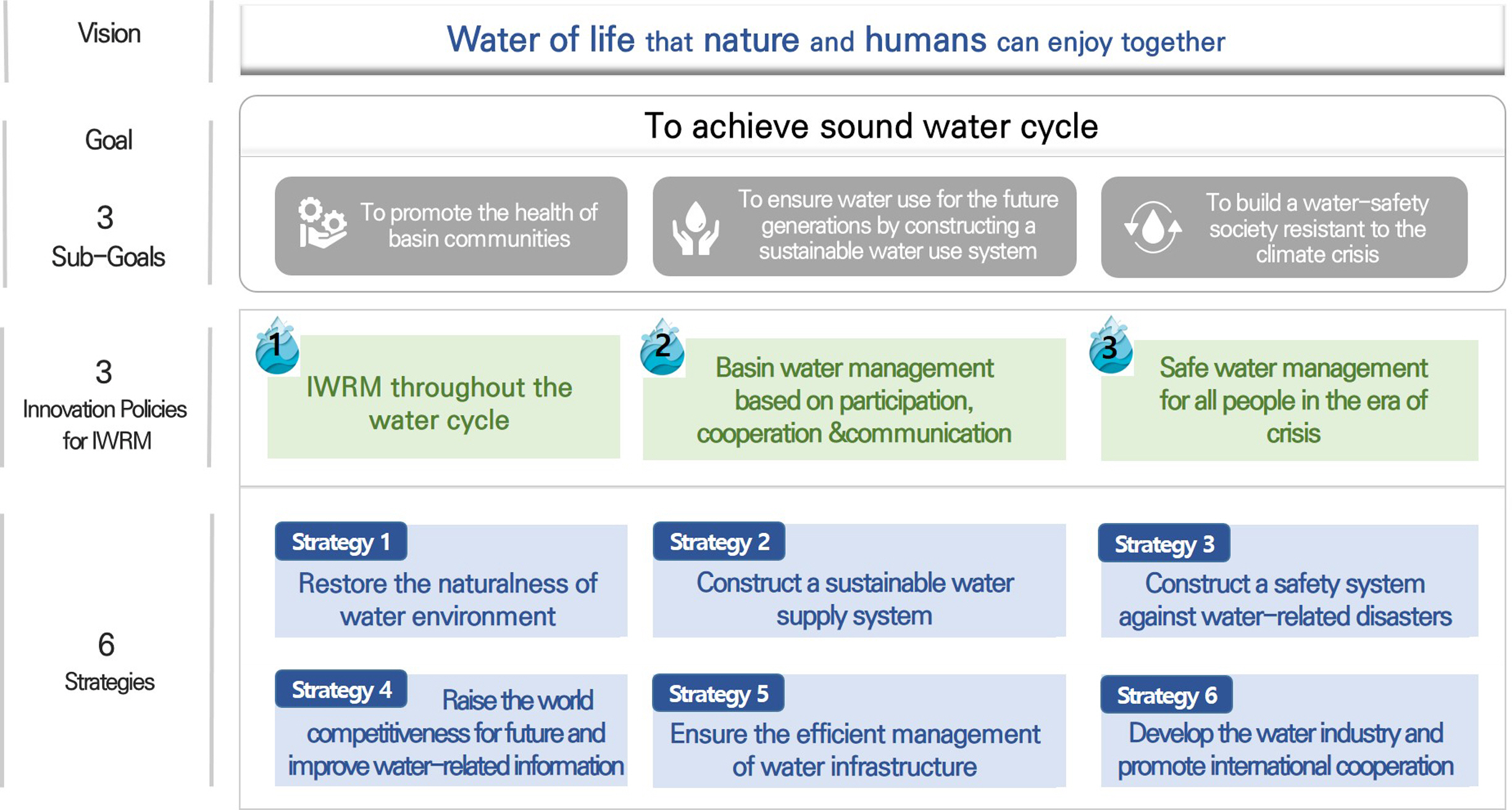 Fig. 1 Schematics of 1st Master Plan for National Water Management (2021~2030) (MCJ, 2021) |