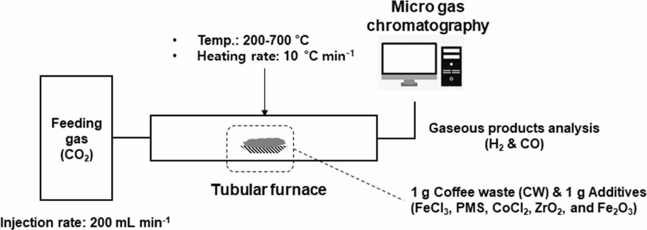 Fig. 1 Schematic of thermochemical conversion process of coffee waste (CW) and various additives |