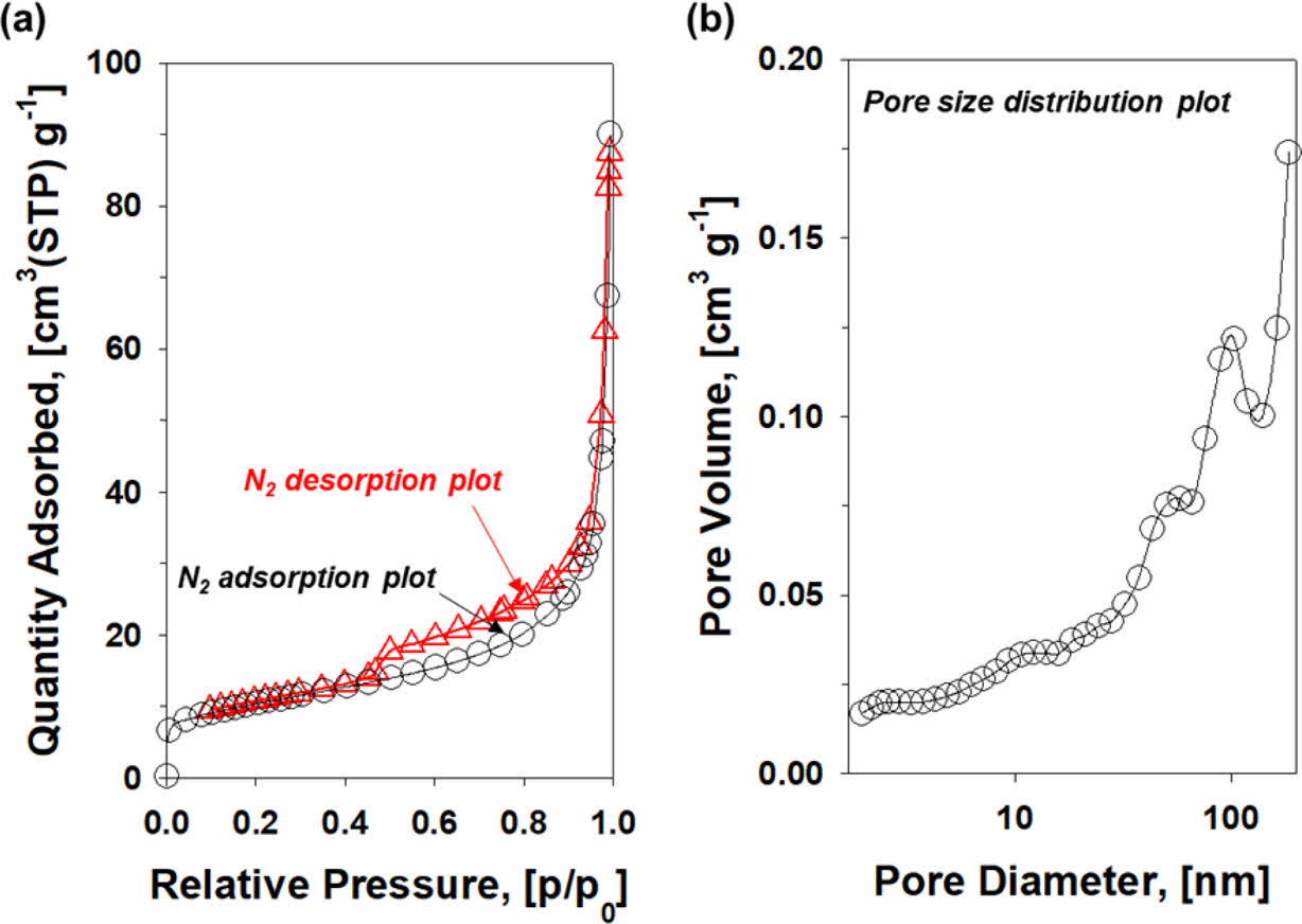 바이오차의 표면적은 BELSORP-max II 표면 분석기(MicrotracBEL, Japan)를 사용하여 분석하였으며 저온에서 질소의 흡,탈착 곡선과 공극 크기분포(BJH 곡선)를 도시하였다. 바이오차의 X선 회절 분석(XRD analysis)는 철의 상변화를 관찰하기 위하여 측정하였으며 X선 회절분석기(D8 Advance, Bruker-AXS, USA)를 사용하여 분석하였다.