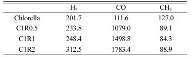 녹조류와 RM의 혼합시료는 두 시료를 1:0.5, 1:1 및 1:2의 질량비로 혼합하여 준비하였으며 이를 각각 C1R0.5, C1R1, C1R2로 명명하였다.