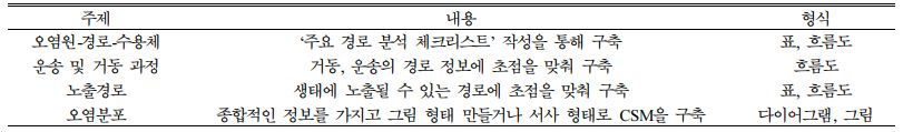 Table 1 Contents and formats according to the topics of the conceptual site model |