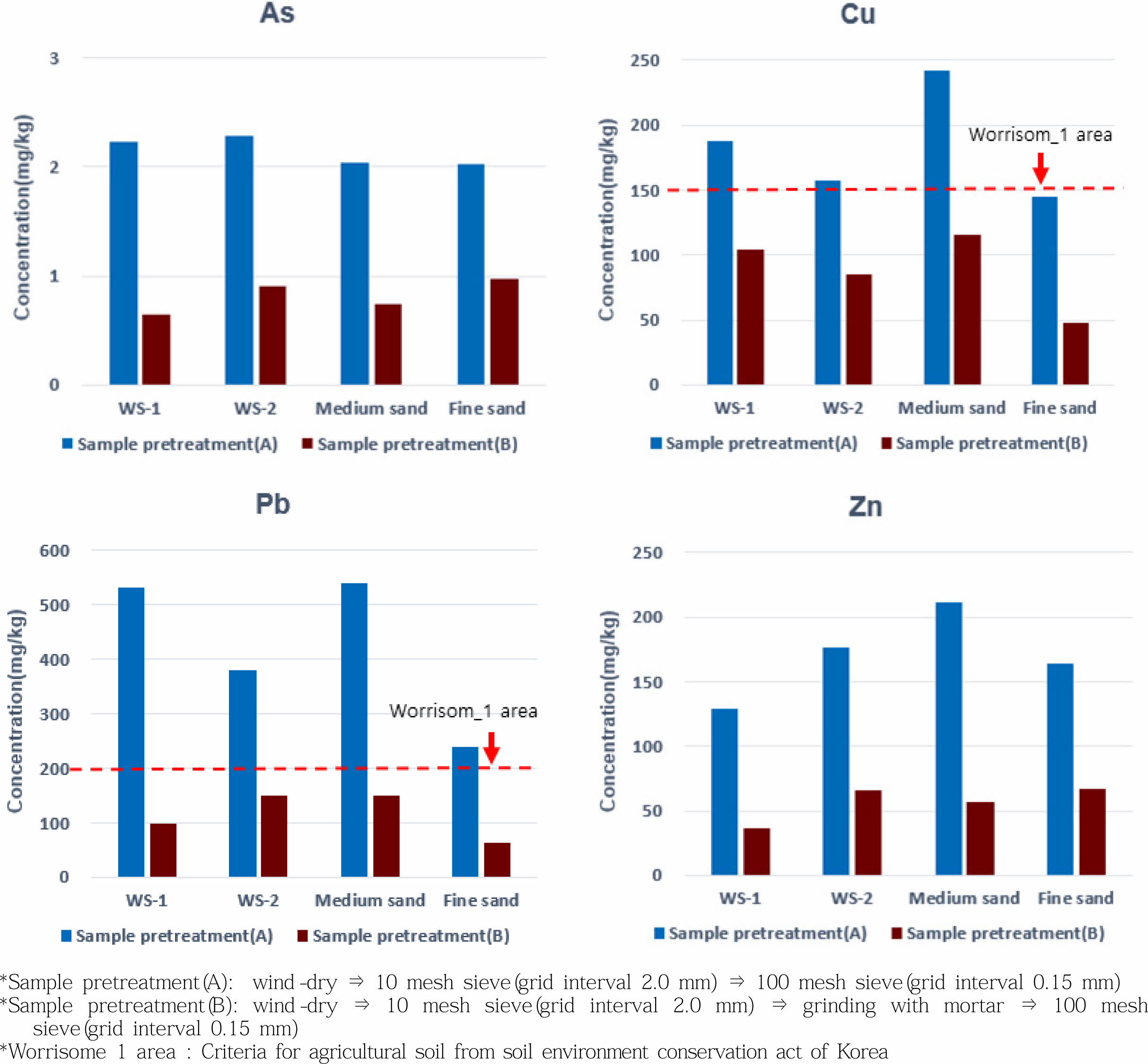 3.2.2. 세척 토양(WS-1, WS-2, 중사 토양, 세사 토양) 중금속분석