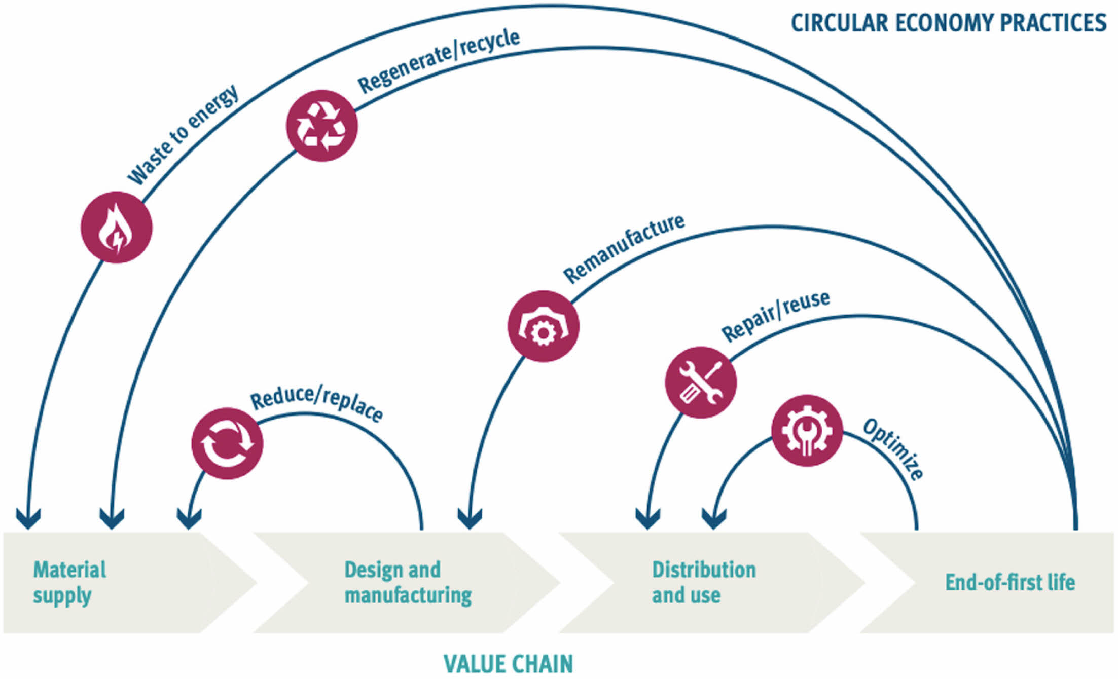 Fig. 2 Comparison of linear value chain and circular economy practices (UNIDO, 2019). |