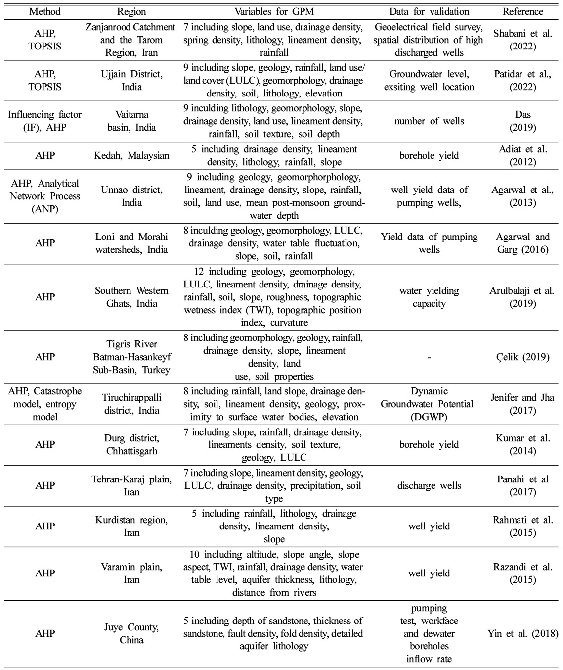 Table 1 Examples of Groundwater Potential Mapping (GPM) based on Multiple-criteria decision-making (MCDM) |