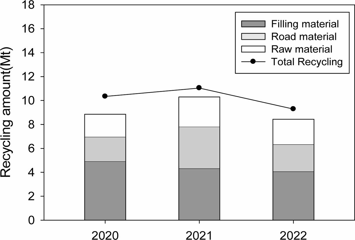 Fig. 1 Steel-making slag recycling purpose and generation amount (2020 to 2022). |