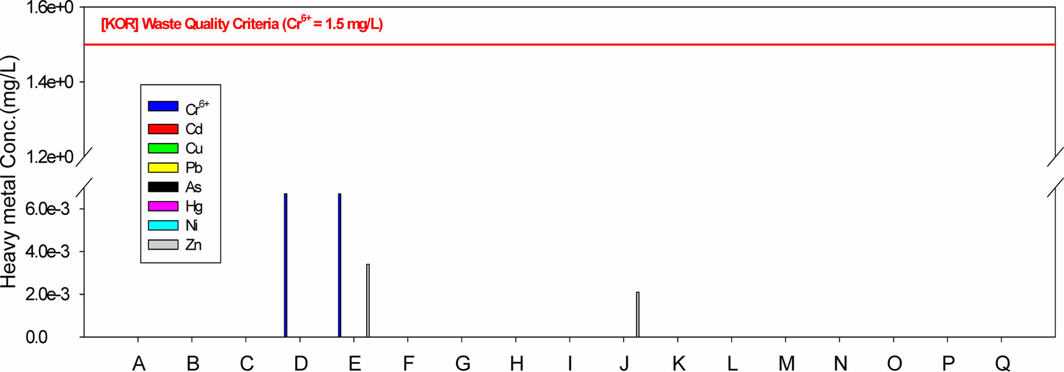Fig. 2 Heavy metals concentration of the leachate by Korean Leaching Procedure. |