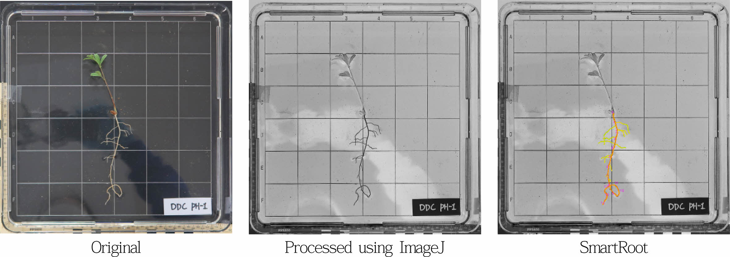 Fig. 6 Procedure for root length and volume estimation by SmartRoot. |