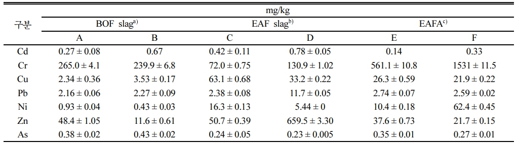 Table 3 Heavy metals concentrations in the steel-making slags |