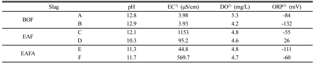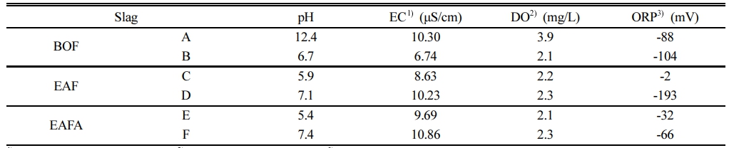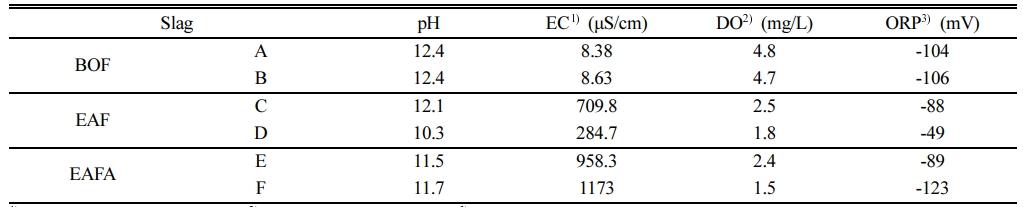 Table 6 Characteristics of the leachate from steel-making slags by Korean Leaching Test (ES 06150.e) |