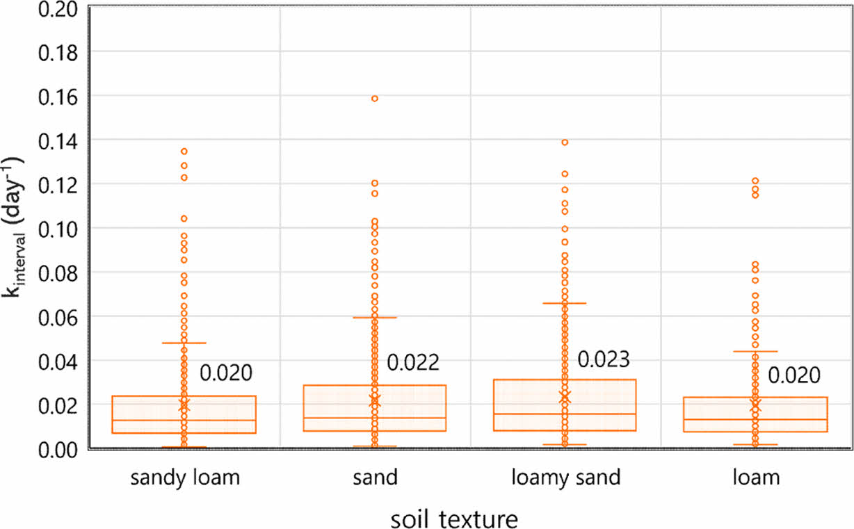 Fig. 13 Distribution of kinterval according to soil texture. |