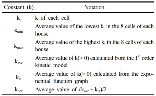 3.2. 분해속도상수(k)에 의한 정화 평가