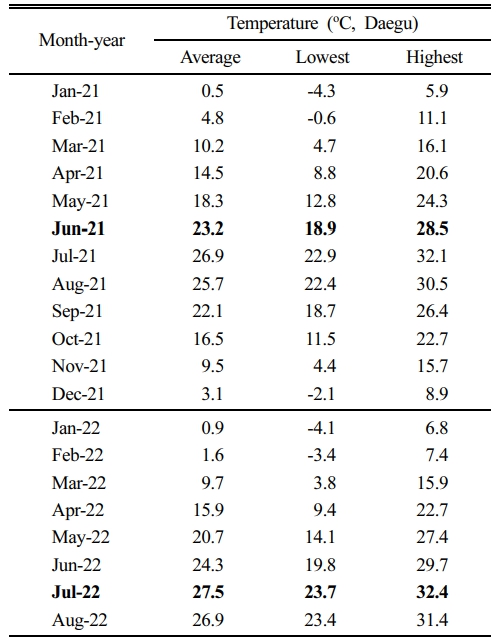 *Korea Meteorological Administration (2021.01-2022.08) |