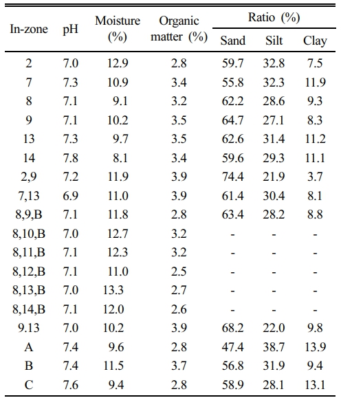 Table 11 Physicochemical properties of contaminated soil according to the in-zones |