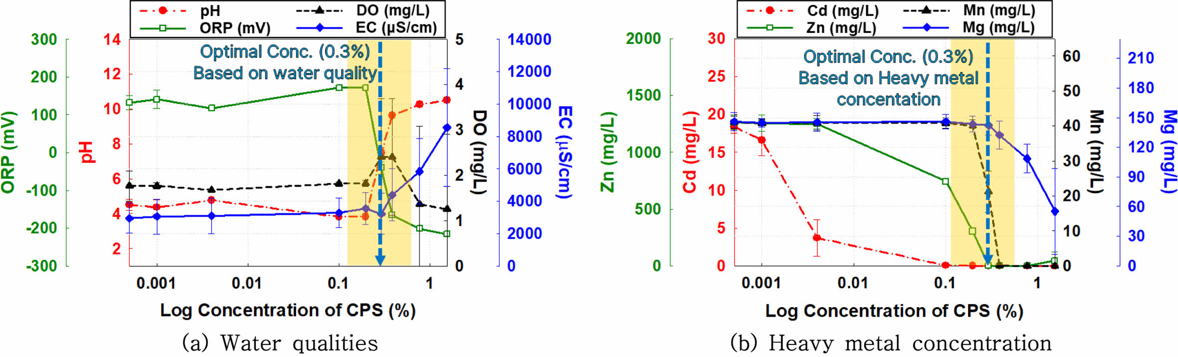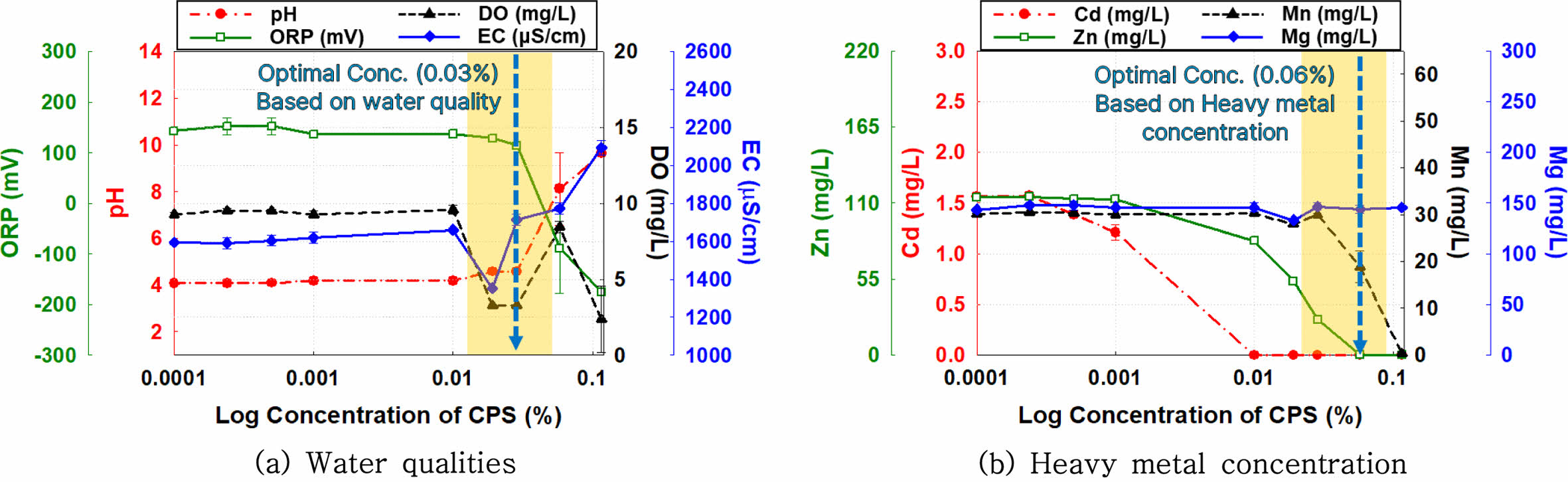 3.2. CPS 주입에 따른 수질 이화학적 특성 및 중금속 농도 변화