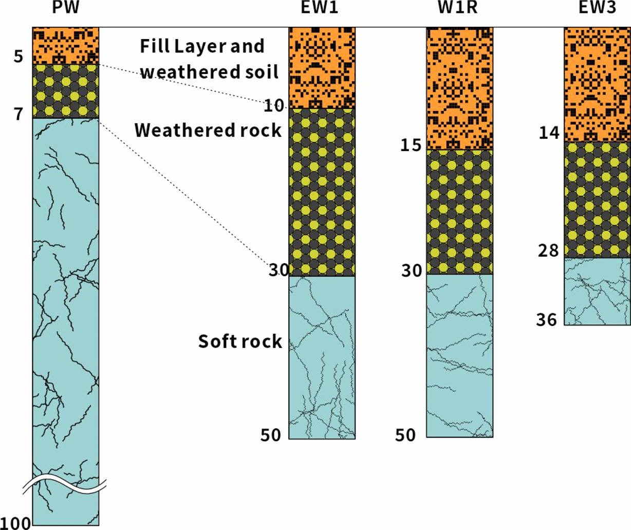 Fig. 3 Geological cross-section of wells in the study site (Based on the geological survey results in Table 3). |