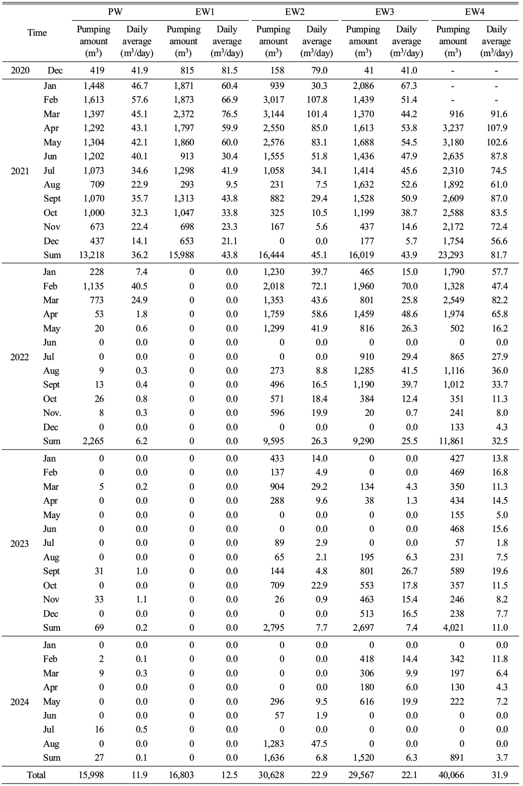 Table 2 Summary of extraction well operation results for contaminated groundwater in the study site |