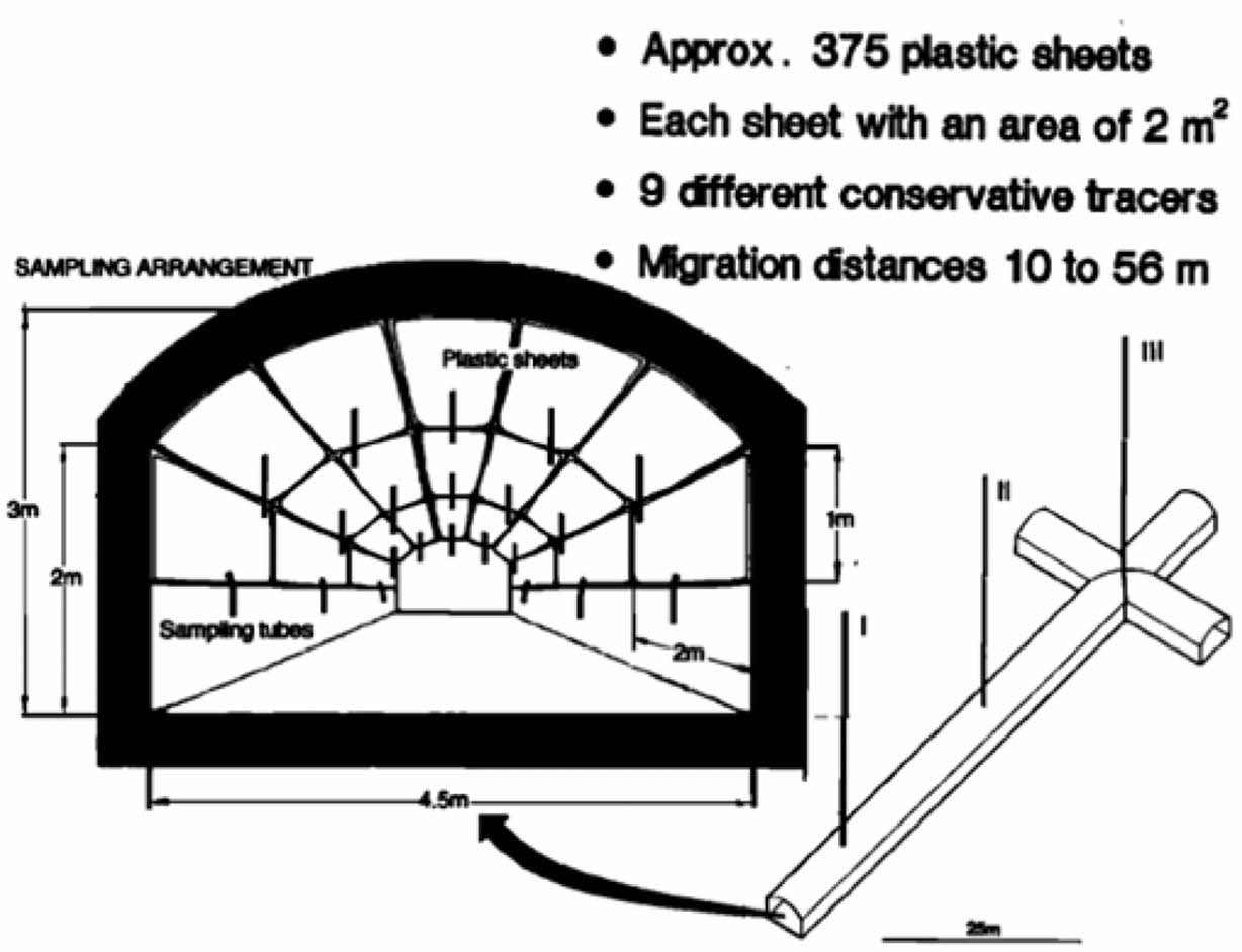 Fig. 1 The sketch of a large-scale tracer test conducted at the Stripa Mine (Neretnieks, 1993). |