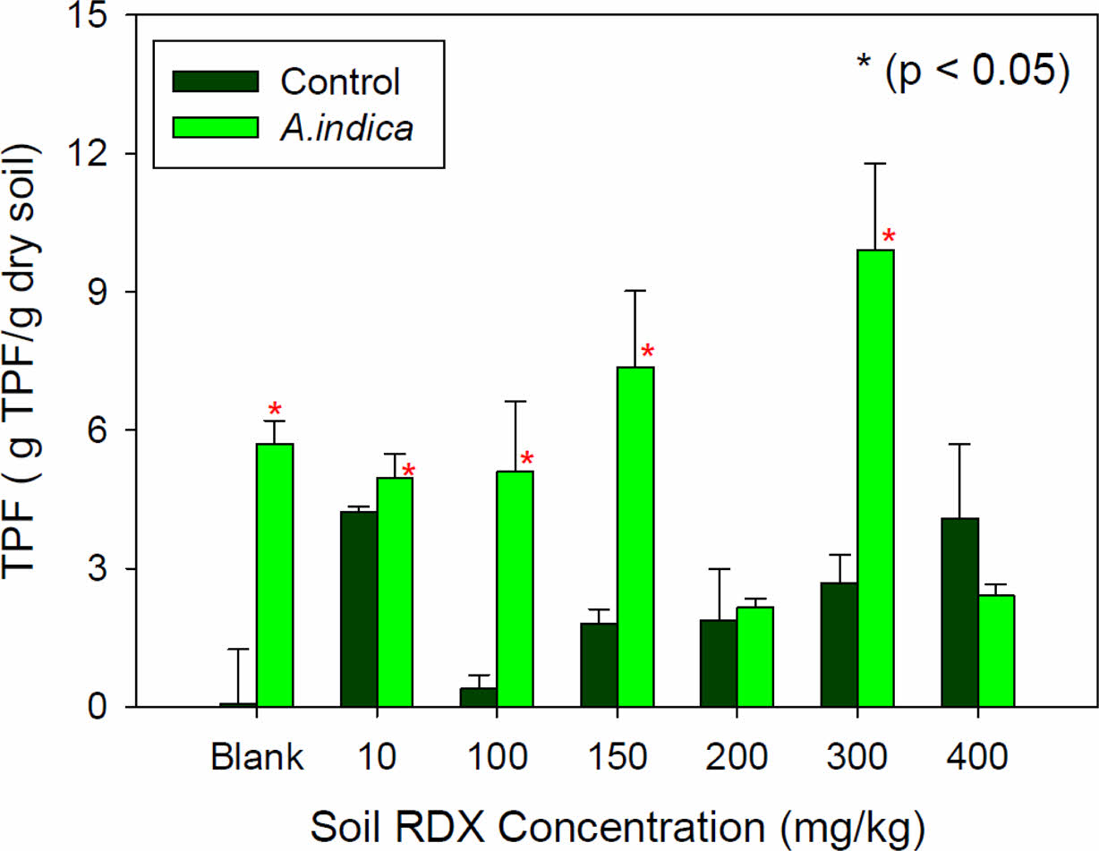 Table 2 RDX concentrations in the pot soils cultivated with Aeschynomene indica seedling for 21 days |