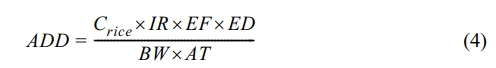여기서 Crice는 쌀을 통한 섭취 농도, IR은 식이섭취량(kg/day), BW는 체중(kg)이었다.