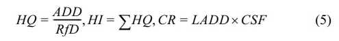 Table 5 Classification Criteria Based on Hazard Quotient (HQ) and Cancer Risk (CR) |
