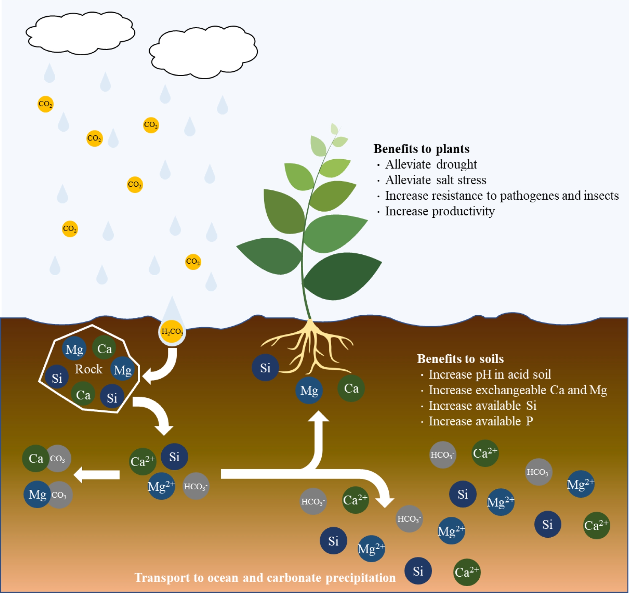 Fig. 1 Overview of enhanced weathering mechanism in soil environment. |