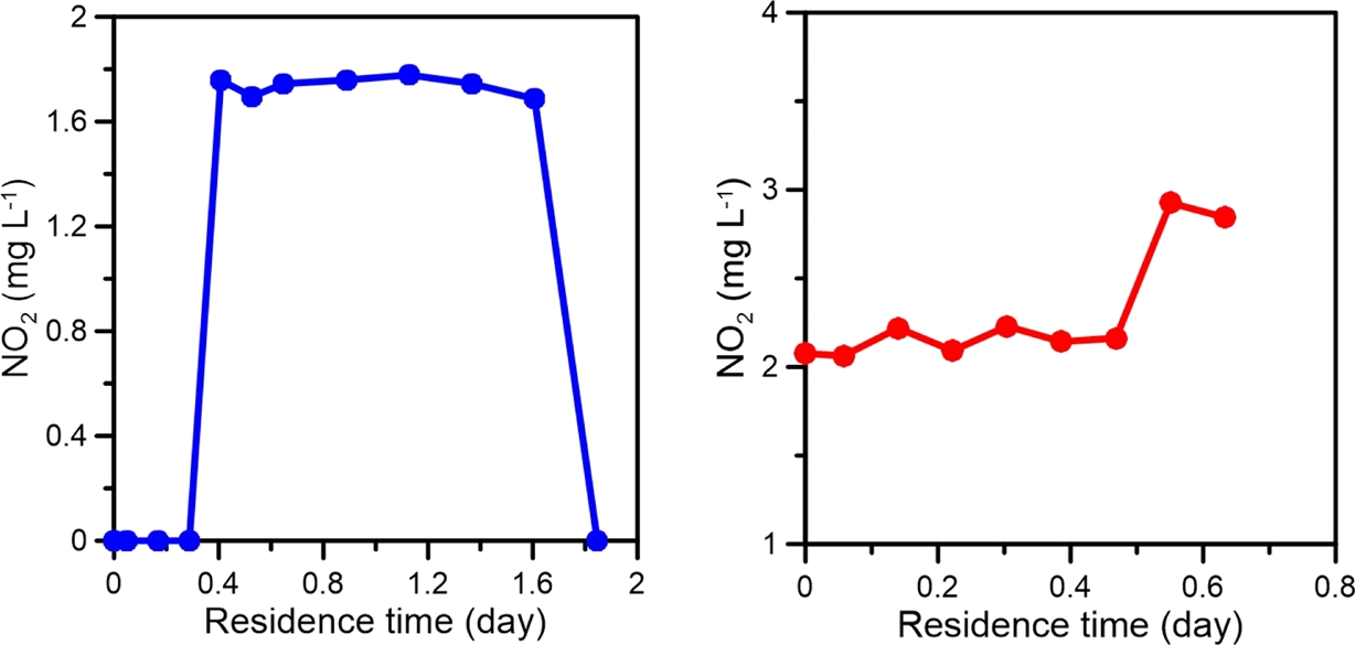Fig. 6 NO2− concentrations of the Old (left) and New (right) columns. |