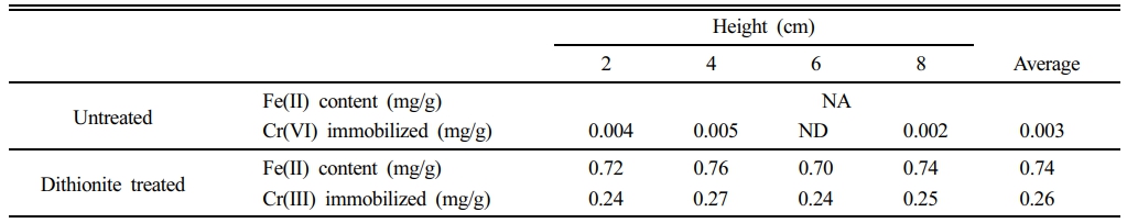 Table 2 Depth profiles of Fe(II) content and immobilized Cr in untreated and dithionite-treated columns |
