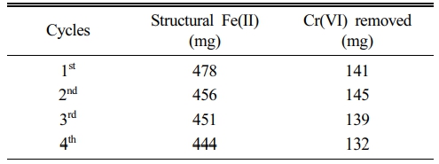 3.2. 구조철 환원에 의한 Cr(VI) 제거 및 고정화
