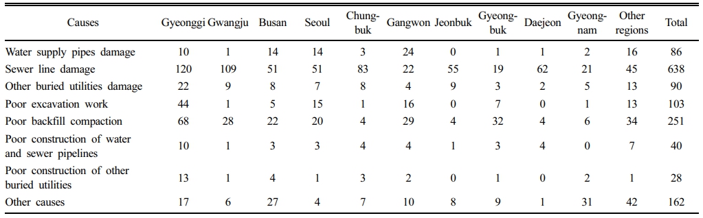 Table 2 Reported causes of land subsidence in major cities in Korea (unit: cases) |