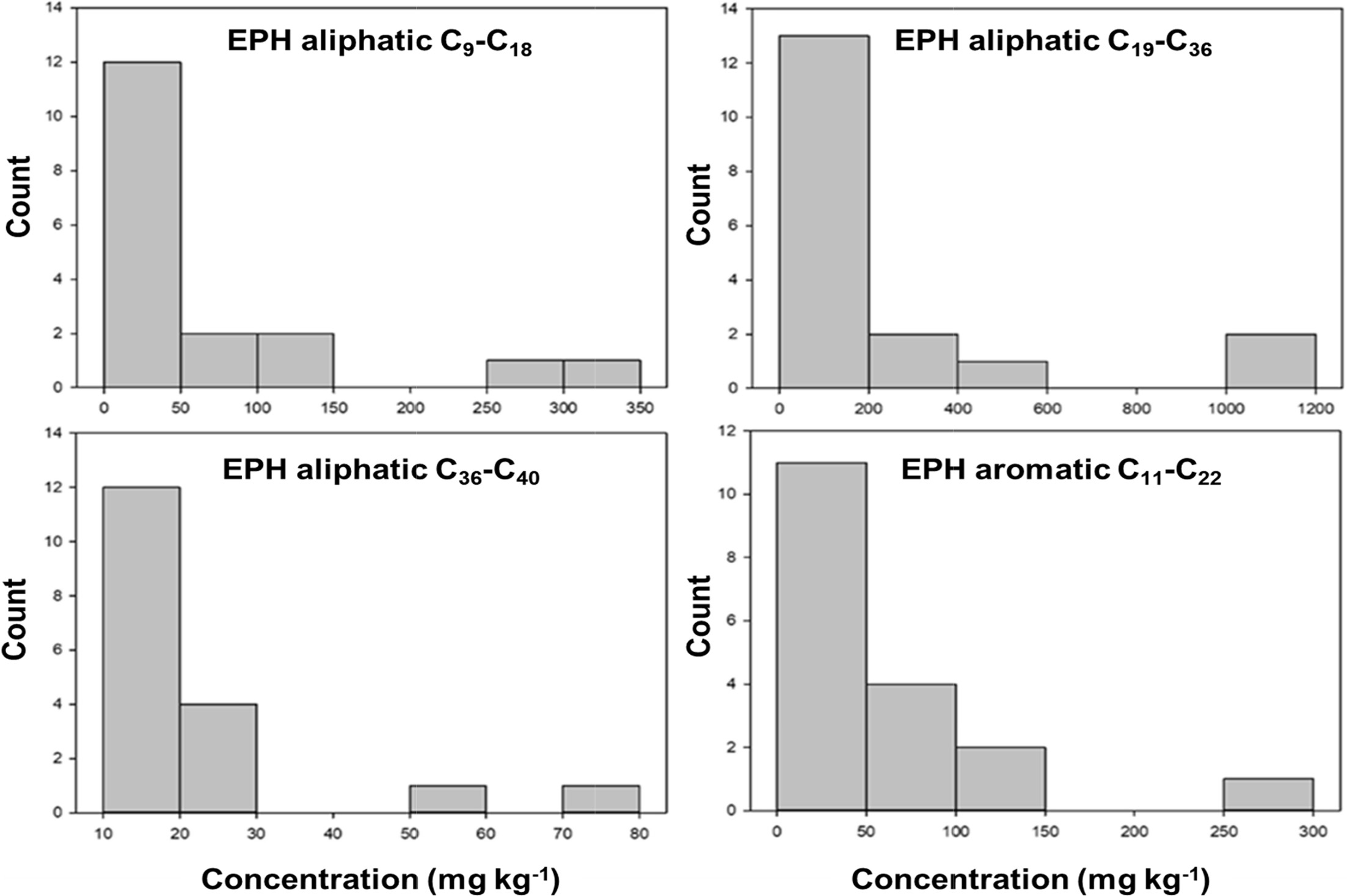 petroleum hydrocarbons (EPH) with four subgroups. At the study site,
