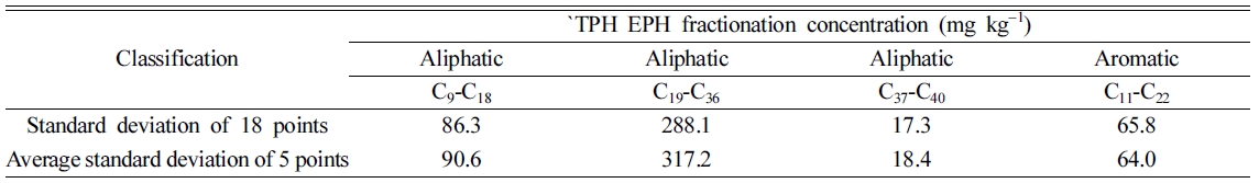 Table 5 Standard deviation of TPH EPH concentrations of 18 points and the average standard deviation of TPH EPH concentrations of 5 points |