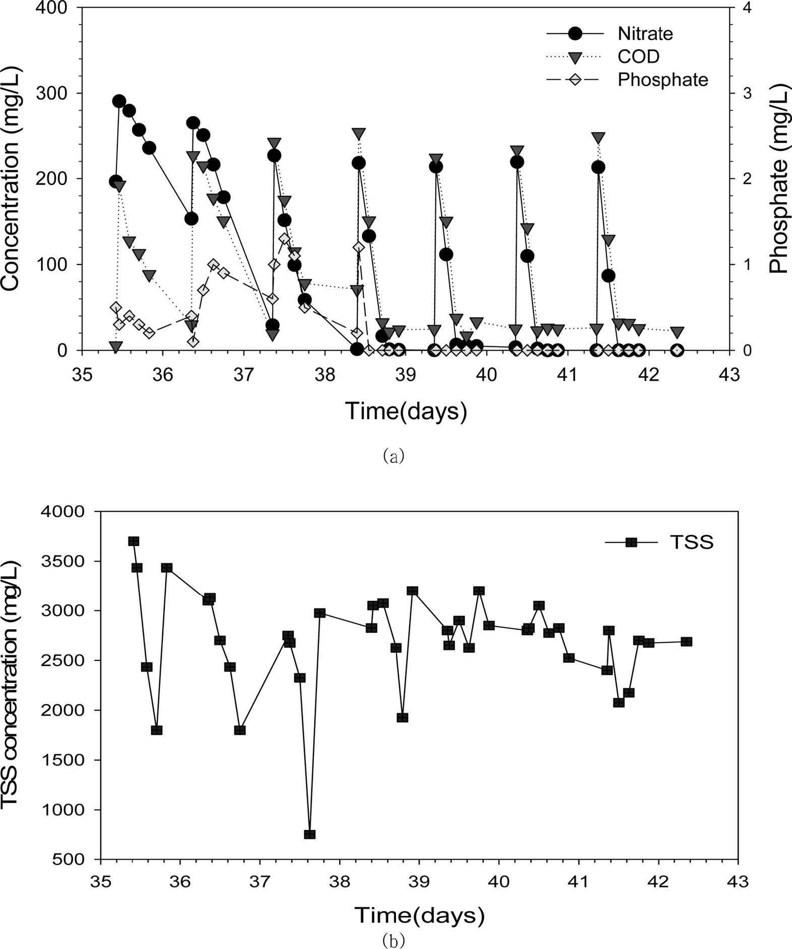 et al., 2015). 본 연구의 SBR 반응조 내 NO3- 농도는 반응초기를 제외하고 50 mg/L 정도로 낮기 때문에