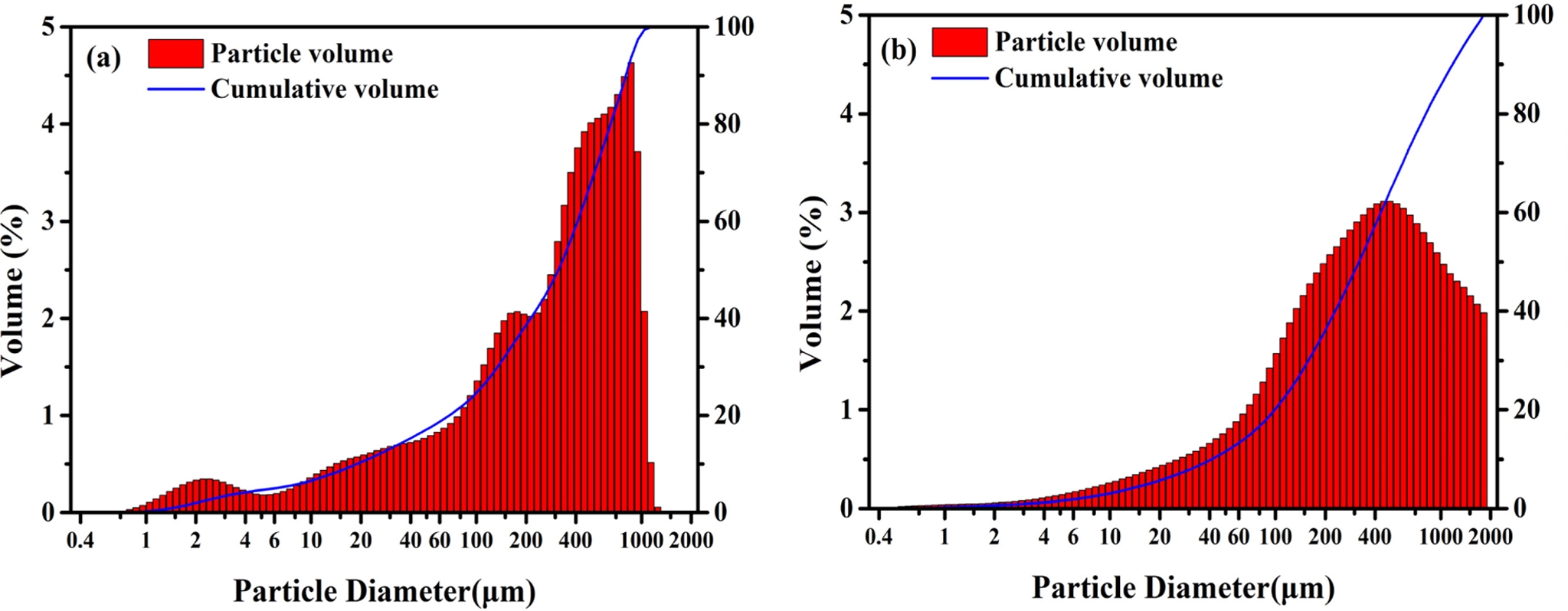 Fig. 3 Size distribution results of selected soils ((a) sandy loam, (b) loamy sand). |
