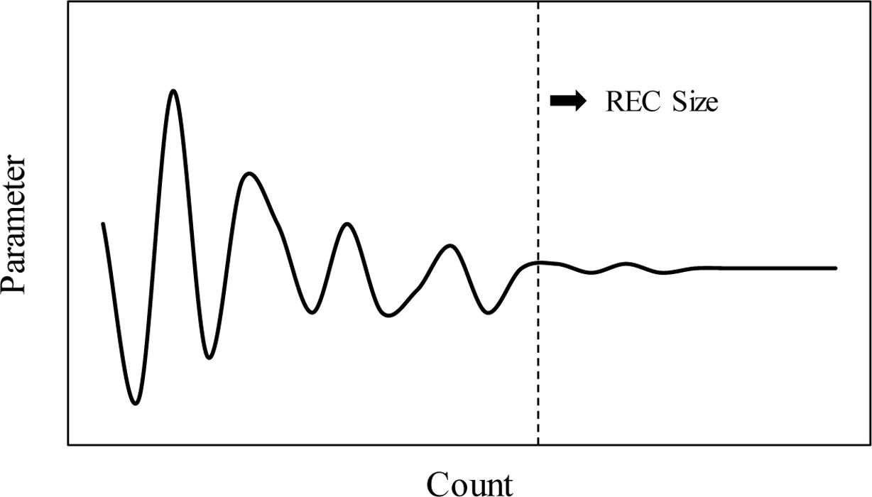적정 표본의 수를 결정하였다(Katagiri et al., 2020). 대표요소개수(REC)는 대표요소체적과 유사하게 전체를 대표하는 값을 산출