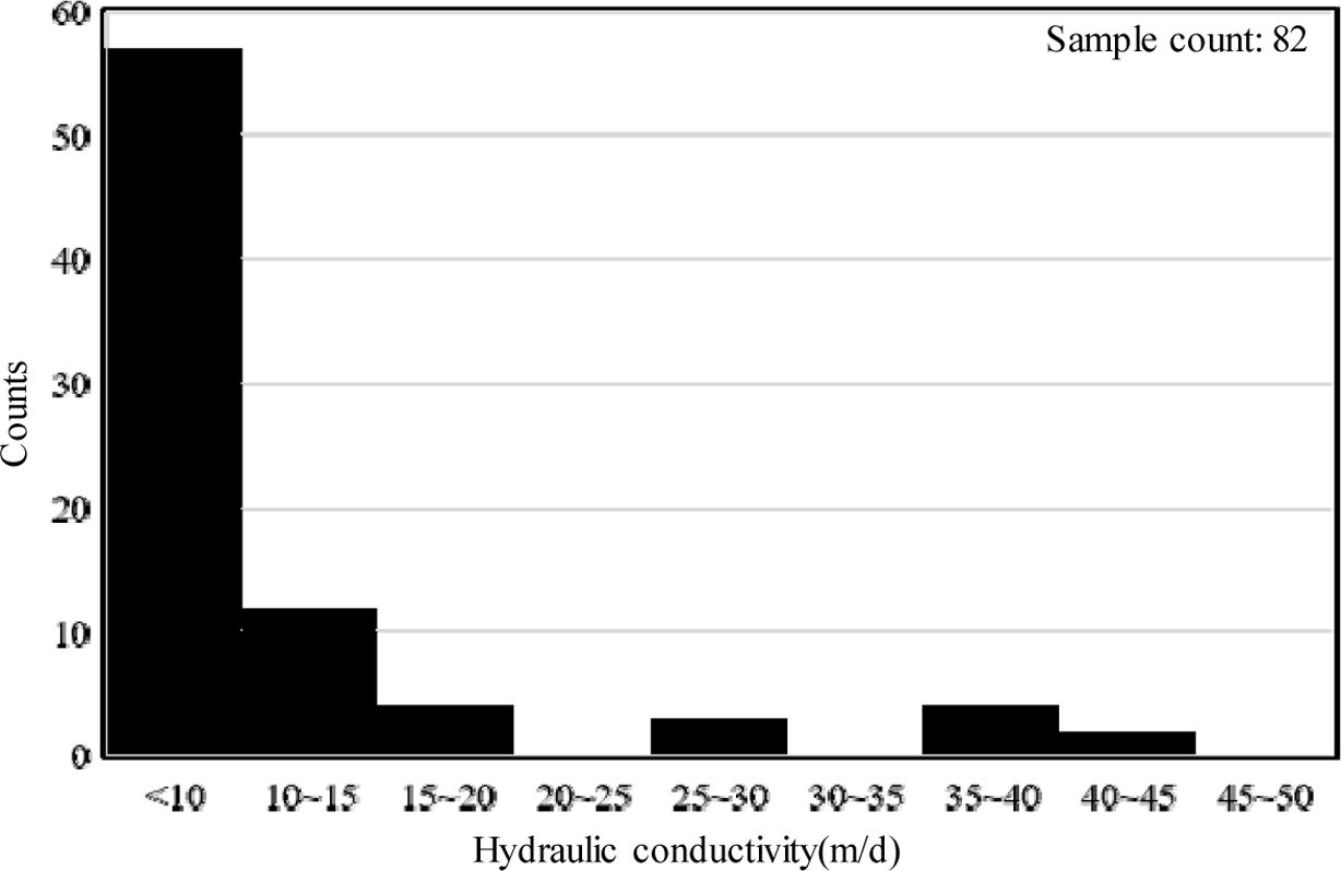 Fig. 9 Histograms of hydraulic conductivity in Changnyeong area (Kim et al., 2018). |