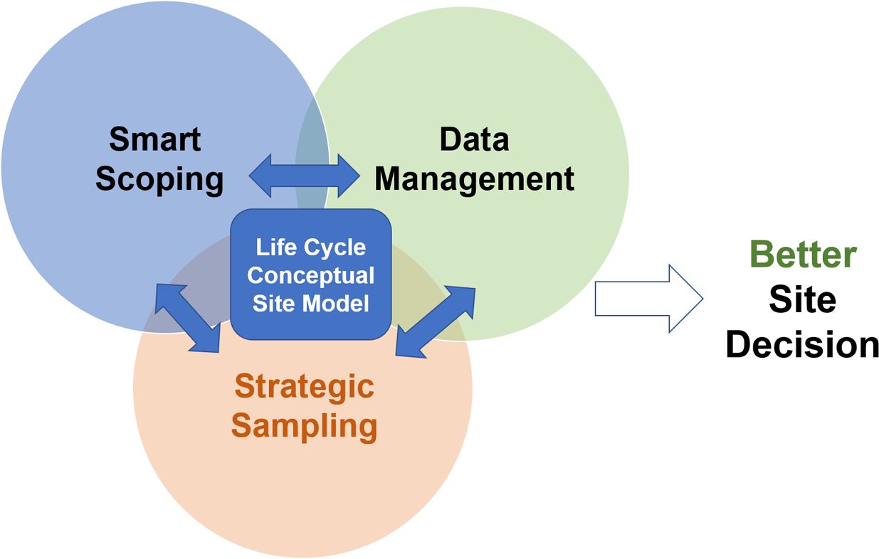 증거를 생산할 수 있다. 전략적 샘플링에서의 중요한 요소는 1) 핵심 결정사항, 의사결정권자, 현장에 대한 불확실성을 확인하기 위한 철저한 범위관리(scoping)와