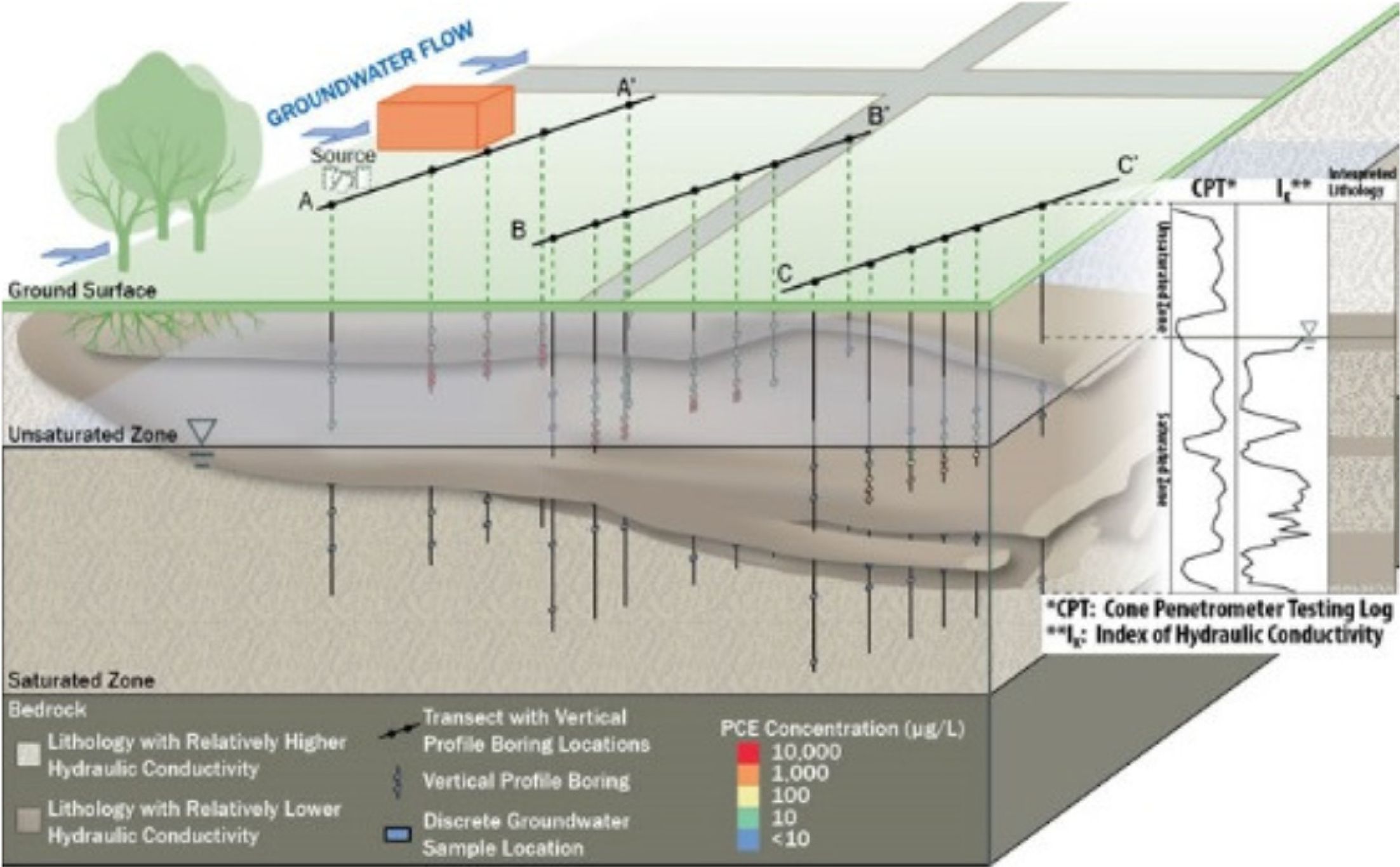암반층 지하수 오염을 평가하기 위한 샘플링 전략에는 분명한 차이가 존재한다. 특정 오염부지에 적합한 전략적 샘플링을 통한 고밀도 정밀 특성화를
