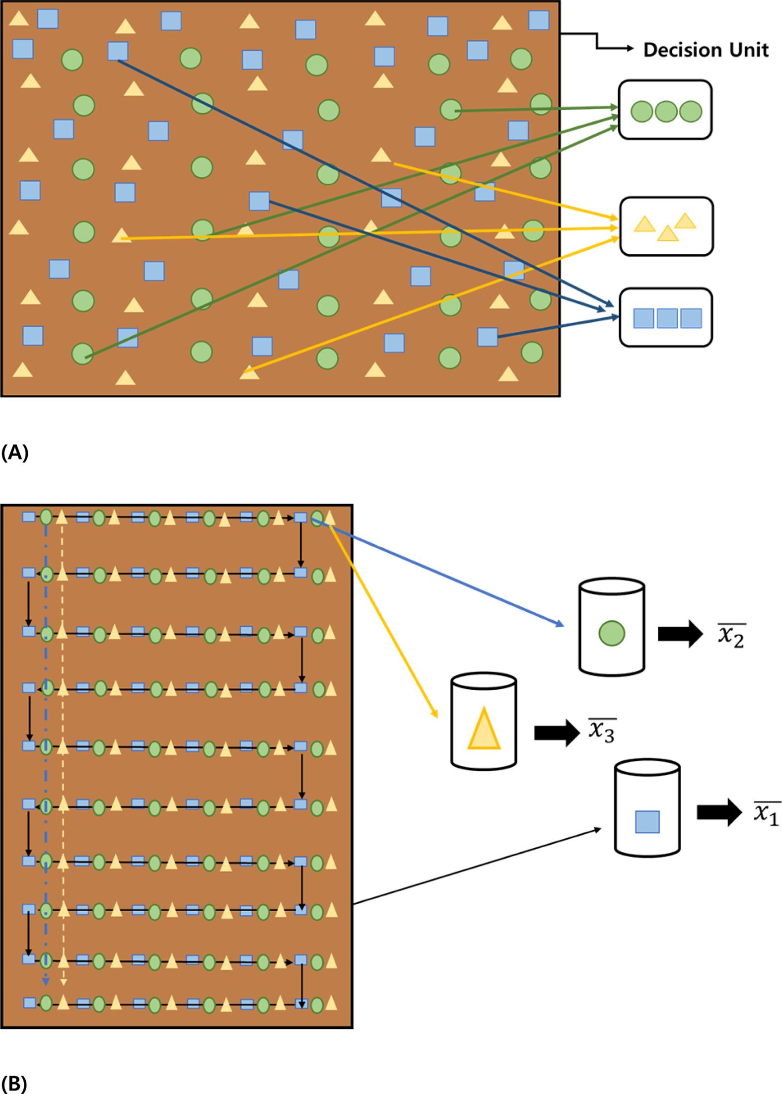 Fig. 4 Incremental Sampling (IS) Replicate Samples in a Decision Unit. (A). Incremental Sampling Methodology by ITRC (B) [Figure redrawn from the original in US EPA (2018)] |