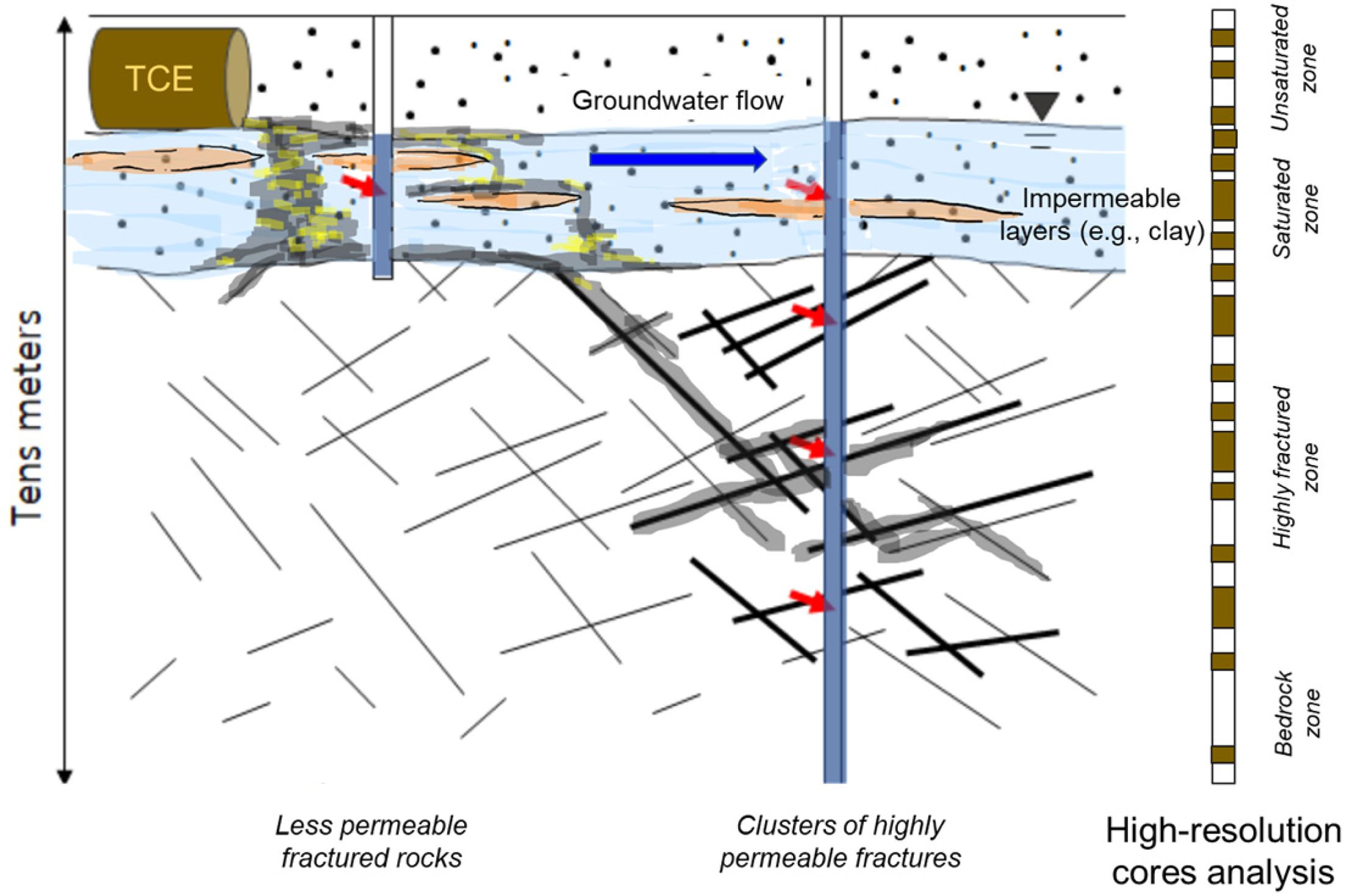 Fig. 8 High-resolution site characterization for trichlorethylene (TCE) contaminated fractured rock environments using borehole groundwater and rock core [US EPA (2018)]. |
