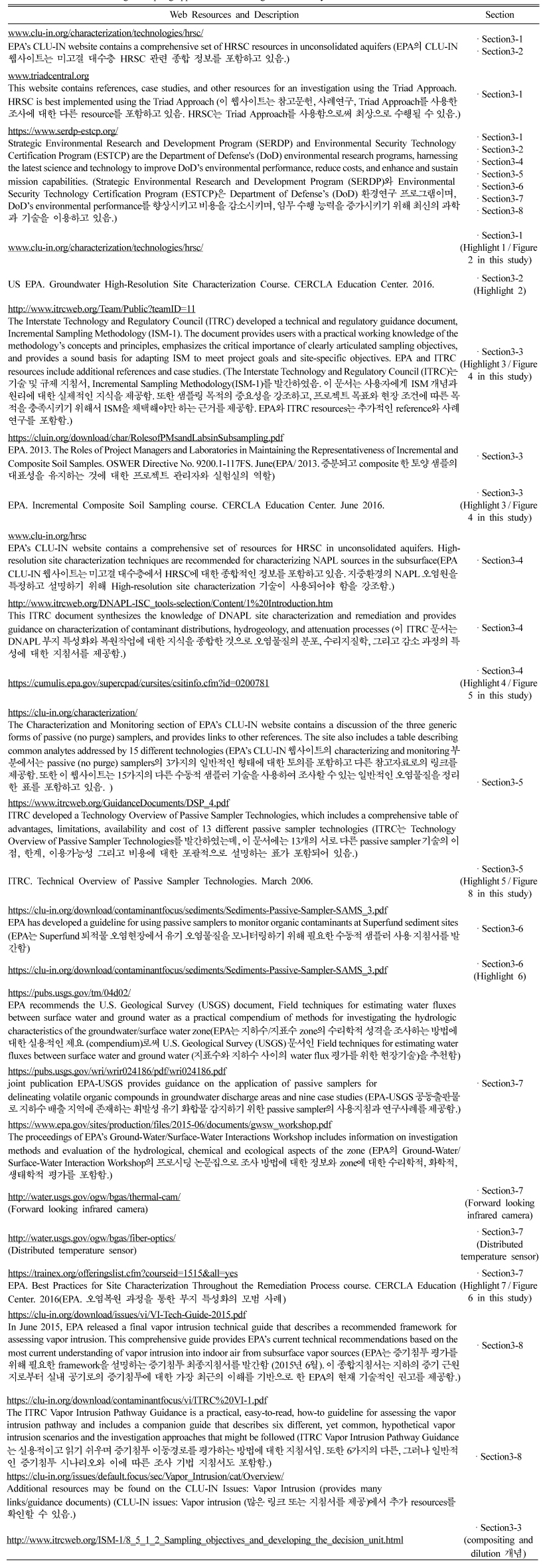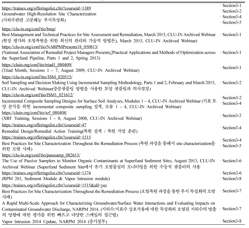 달성에 도움이 되기 위해 세가지 기술 안내서를 발간하였다(https://clu-in.org). 특히 지난 50년간 다양한 오염환경을 대상으로 수집된