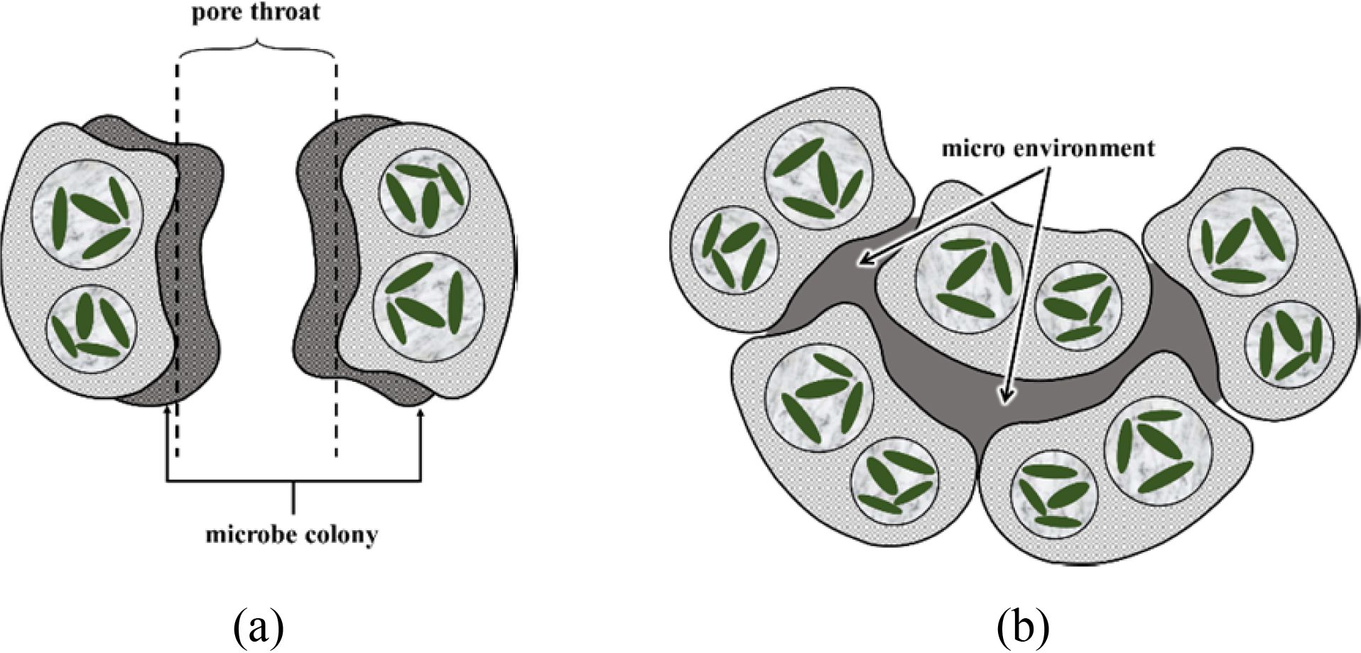 부산물을 만들고 개체수를 확장시키면서 다공질 매질인 지층에서 공극의 모양 변화와 공극 내 유체의 물리적, 화학적 변화를 일으켜 전기적